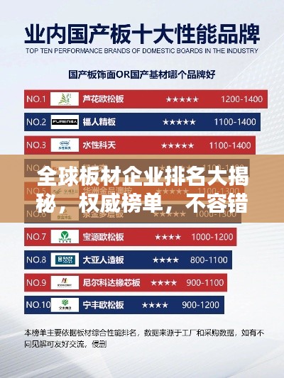 在全球木材与板材行业中,各大企业凭借其卓越的品质、创新的技术与强大的市场份额,赢得了全球消费者的信赖与赞誉,以下是全球知名板材企业的排名,让我们一同了解这些引领行业的佼佼者。