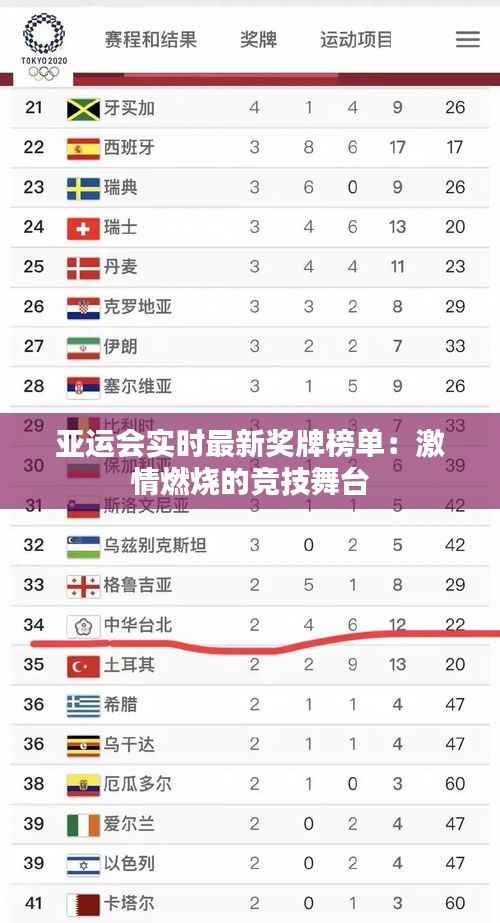 标题:亚运会实时最新奖牌榜单:激情燃烧的竞技舞台